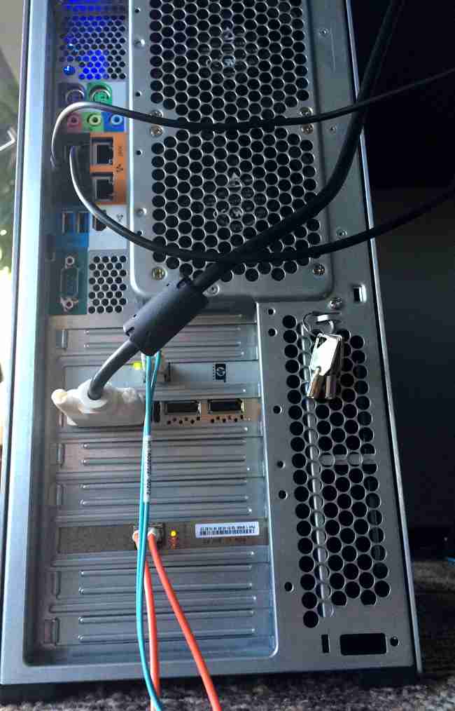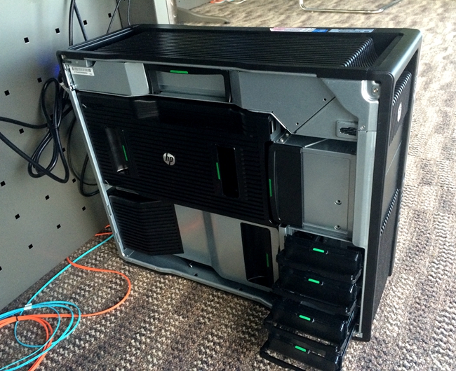 如上圖所示 Z820工作站本地?zé)o硬盤,通過光纖直連后臺的高性能HP存儲