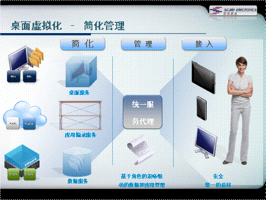 從集中位置配置、部署和維護獨立于硬件的桌面虛擬機,從而實現(xiàn)更簡單的管理和更高效的桌面部署。從而提高業(yè)務(wù)靈活性并縮短響應(yīng)時間。最終獲得的訪問模型將更加靈活,能夠提高安全性、降低運營成本和簡化桌面管理。
